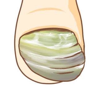 爪が内側にくるっと巻き込んでしまうと、皮ふに食い込んで痛みが出るだけでなく、爪の形も変わってしまうことがあります。